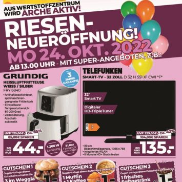 Mit tatkräftiger Unterstützung des Ipsheimer Großhändlers OSF Handels GmbH wurde das Wertstoffzentrum Veitsbronn um einen neuen Geschäftsbereich im Rahmen einer Expansion für elektrische Haushaltsgeräte erweitert. Unter dem neuen Namen ArcheAktiv fand die große Geschäftseröffnung zwischen 24. und 29. Oktober 2022 am neuen Standort in Nürnberg, Sigmundstraße 180 statt.